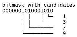 If you want to remove candidate 7, you shift in a new bitmask with value 1 that value 7 positions to the left
