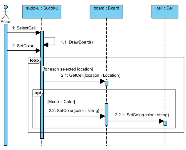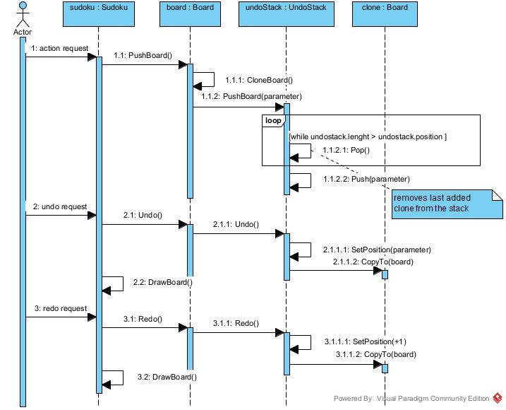 The following picture shows how the requirements for the sudoku app have been refined during the development process. Note that most messages in the UML sequence diagrams have become operations in the UML Class diagram.