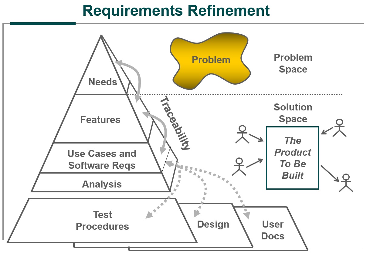 This pictures, borrowed from IBM, is still actual. Today we don't speak about needs, features and use cases, but about big changes, features, requirements and user stories. But the concept is still the same. You have to break down a solution gradually and you have to keep track of your requirements. Sometimes a problem detected during the implementation can be traced back to a high level requirement that has to be adjusted.